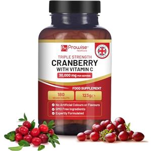 Prowise Healthcare Mirtillo Rosso Tripla Forza 30.000 mg con Vitamina C - 180 Compresse Vegane Facili da Deglutire