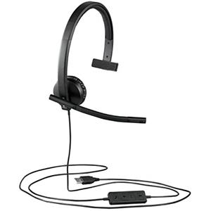 Logitech H570e Cuffie Cablate, Mono con Microfono Cancellazione di Rumore, USB, Controlli in Linea con Pulsante Disattiva Audio, Indicatore LED, Compatibili con PC/Mac/Laptop, Nero