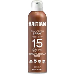 Haitian Protezione Solare Spray SPF15 - 200ml, Trasparente, Resistente all'Acqua per Viso e Corpo