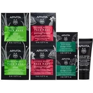 APIVITA Cofanetto Promo XM Express: Maschere Viso Idratanti e Illuminanti, Dieta Detox e Gel Detergente