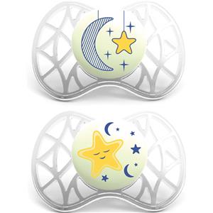 NUK Succhietto Signature Night in Silicone 0-6 mesi - 2 Pezzi, Tettina Ortodontica che si Illumina al Buio