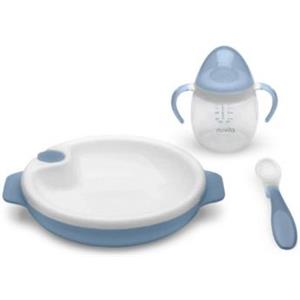 Nuvita Set Pappa Completo 6 Mesi - Piatto Termico, Cucchiaio in Silicone e Tazza Antigoccia - Powder Blu