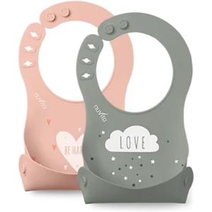 Nuvita Bavaglini in Silicone Morbido - Set di 2 con Tasca Apribile, Colori English Rose e Sage Green