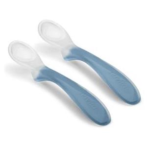 Nuvita Set di 2 Cucchiai in Silicone Powder Blu - Delicati per Gengive e Primi Dentini, Manico Ergonomico