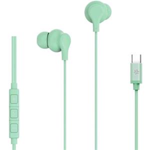 Celly Cuffie Auricolari In Ear USB-C Verde con Microfono e Controllo Volume