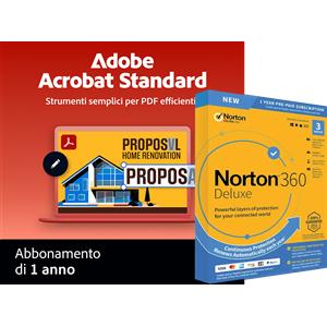 Adobe Acrobat Standard + Norton 360 Deluxe per 3 Dispositivi | 1 anno di abbonamento | Windows
