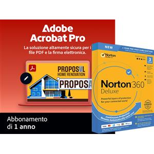 Adobe Acrobat Professional + Norton 360 Deluxe per 3 dispositivi | 1 anno