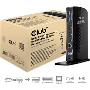CLUB3D Docking Station USB 3.2 Gen1 Type A/C Dual Display 4K60Hz CSV-1460 - Cablato, 6 porte USB, Gigabit Ethernet, Nero