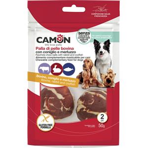 Camon Palla di Pelle Bovina con Coniglio e Merluzzo - Snack Masticabile Gluten Free per Cani - 50GR