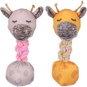 Flamingo Giocattolo Cucciolo Giraffa con Pallina e Corda - 22 cm, Tessuto e Corda, Con Squeaker