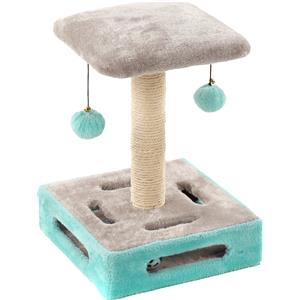 Flamingo Tiragraffi Cya 1 - Turchese/Grigio, 28x28x39 cm, in morbido peluche con corda in sisal