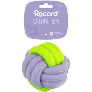 Record Cotton Fluo Palla Intrecciata per Cani - Gioco in Cotone Morbido e Resistente, 9,5 cm, Colori Giallo e Lilla