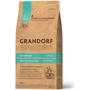 Grandorf Alimento Secco Completo per Cani Adulti Medium & Maxi - 4 Carni (Agnello, Tacchino, Anatra, Coniglio) - 10 kg, Senza Glutine e Ideale per Digestione Sensibile