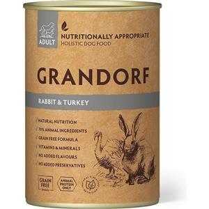 Grandorf Alimento Umido Completo per Cani Adulti - Coniglio e Tacchino, 400 g, Naturale e Ipoallergenico