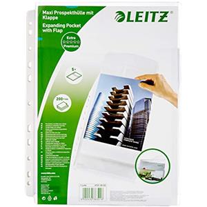 Leitz Buste a Soffietto Espandibili in PVC Trasparente A4, Alta Capacità Fino a 200 Fogli, Confezione da 5 Pezzi