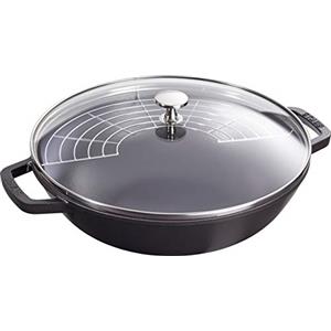 Staub Wok con Coperchio in Vetro Nero, Ø 30 cm - Versatile per Cottura al Salto, Friggere e Cuocere a Vapore