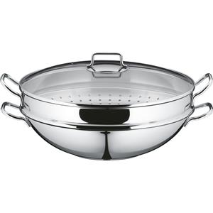 WMF Wok con Cestello in Acciaio Inox 36 cm - Cottura a Vapore, Resistente e Facile da Pulire