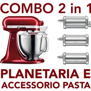 Ⓜ️🔵🔵🔵 KitchenAid Artisan COMBO 5KSM185PSECA e 5KSMPRA - COMBO Planetaria rosso mela metallizzato con set di 3 accessori per la pasta