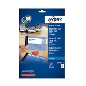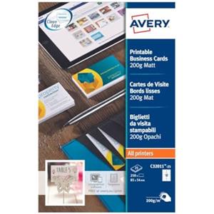 Avery Biglietti da Visita 85 x 54 mm, 260 gr, Opachi, Stampabili Fronte/Retro, Confezione da 25 Pezzi