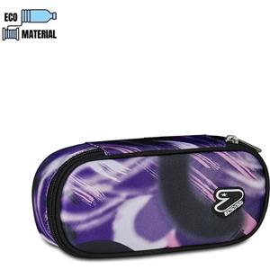 Seven Astuccio Ovale Mark Girl Viola - 23x10x5,5 cm, in Poliestere Riciclato con Taschino e Passanti Elastici