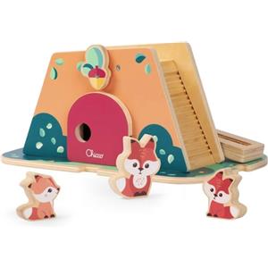 Chicco Tana delle Volpi - Gioco in Legno Montessori con 3 Personaggi, Attività di Coordinazione e Motricità per Bambini 2 Anni