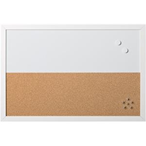 Bi-Office Lavagna Magnetica e Bacheca in Sughero 60 x 40 cm con Cornice Bianca MDF - Cancellabile a Secco