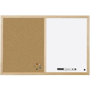 Bi-Office Lavagna Combinata 90 x 60 cm - Superficie Magnetica e Sughero, Cancellabile a Secco, Cornice in Legno Naturale
