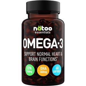NATOO Omega 3 - Integratore di Acidi Grassi Omega 3 in Softgels, 60 unità, con EPA e DHA per la salute cardiaca e cerebrale