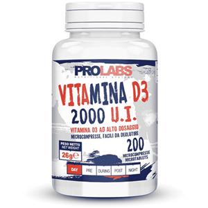 Prolabs Vitamina D3 2000 UI - 200 Microcompresse Facili da Deglutire per Ossa e Denti Sani