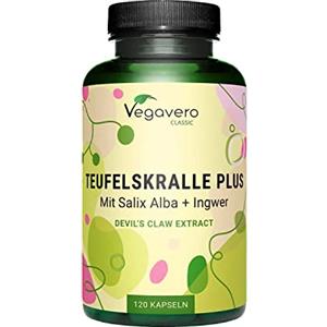 Vegavero Artiglio del Diavolo 550 mg - 120 capsule con Salice Bianco e Zenzero, 2% Arpagoside, per la salute delle articolazioni, Vegan
