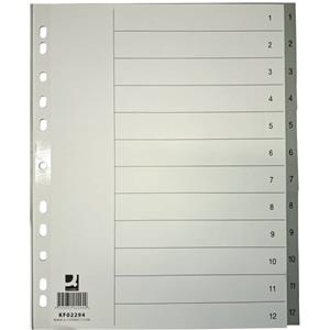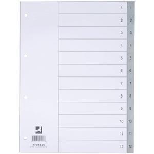 Q-Connect Divisore Numerico Grigio in Polipropilene (PP) 22,5x29,7 cm - 12 Pagine con Indice Scrivibile