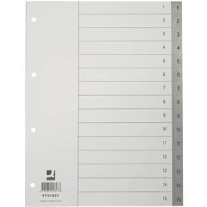 Q-Connect Divisore Numerico Grigio in Polipropilene (PP) 22,5x29,7 cm - 15 Pagine con Indice Scrivibile