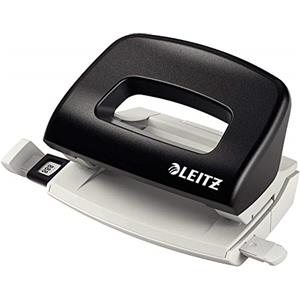 Leitz 50580095 Perforatore a 2 fori Metal rim Nero - Capacità fino a 10 fogli, Guida di Arresto