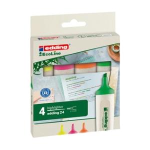 Edding EcoLine 24 Evidenziatore 4 pz Punta a Scalpello 2-5 mm Colori Assortiti Blu, Verde, Rosa, Giallo - Riciclabile e Sostenibile