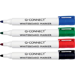 Q-Connect Marcatore per Lavagna Bianca Punta Tonda 2-3 mm - 4 Colori Assortiti (Nero, Rosso, Blu, Verde) - Conf. da 4