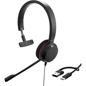 Jabra Evolve 20 Mono Headset - Cuffie certificate per comunicazione unificata per softphone VoIP con cancellazione passiva del rumore - USB-C/A - Nero
