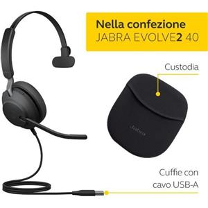 Jabra Evolve2 40 SE - Headset Mono cablato certificato per UC, con USB-A