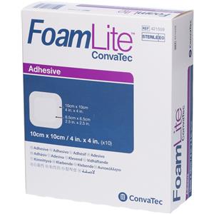 Convatec Foam Lite 10x10 cm - Medicazione in Schiuma di Poliuretano Assorbente con Adesivo in Silicone Microforato, 10 Pezzi