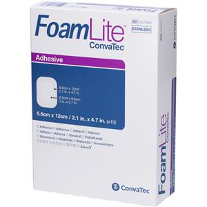 Convatec Foam Lite Medicazione in Schiuma 5.5x12cm - 10 Pezzi, Assorbente con Adesivo in Silicone Microforato