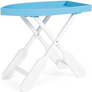 KONTE.DESIGN Tavolino Pieghevole GOZZO in Legno Azzurro e Gambe Bianche - Design a Forma di Barca, 76x40x66 cm