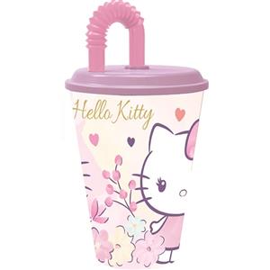 Hello Kitty Bicchiere Sport con Cannuccia 430 ml - Plastica Resistente e Design Divertente