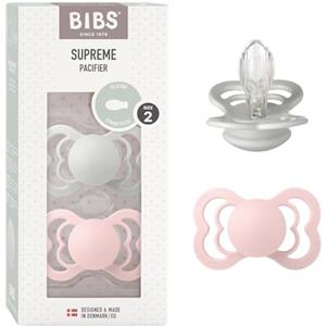 BIBS Ciuccio Supreme in Silicone - Confezione da 2 Pezzi, 0-6 Mesi, Colori Cloud e Steel Blue, Privo di BPA
