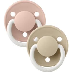 BIBS De Lux Ciuccio Glow - 2 Pezzi in Silicone con Tettarella Tonda, Privo di BPA, Misura Unica, Blush e Vanilla