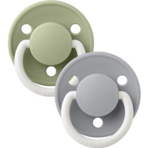 BIBS De Lux Ciuccio in Silicone - Confezione da 2 Pezzi, Privo di BPA, Tettarella Tonda, Taglia Unica, Colori Sage NIGHT e Cloud NIGHT