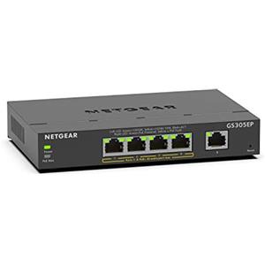NETGEAR GS305EP Switch PoE 4 porte, Gigabit Ethernet LAN Switch PoE+ 63W Plus, (5 porte Plug and Play, Switch di rete gestito PoE, IGMP Snooping, VLAN, alloggiamento in metallo senza ventola)