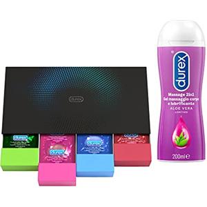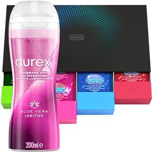Durex Surprise Me Kit di Preservativi Assortiti, Sottili e con Rilievi e Nervature, 40 Profilattici, e Durex Gel Massage 2in1, con Aloe Vera, Lubrificante 200ml