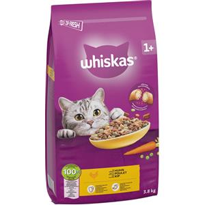 Whiskas 1 Cibo Secco per Gatti Adulto al Pollo - 3,8 kg, Completo e Bilanciato con Vitamine A, D ed E