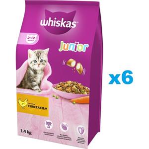 WHISKAS Junior Cibo Secco Pollo per Gattini 6x1,4 kg - Nutrienti Completi e Kibbles Extra Piccoli