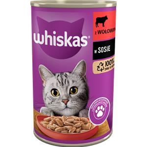 WHISKAS Cibo Umido per Gatti 1 con Manzo in Salsa 400 g - Alimento Completo e Bilanciato