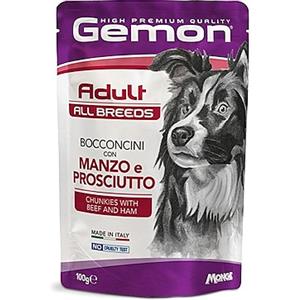 Gemon Cane Bustine Snack Completo Manzo e Prosciutto 100 g - Alimento Umido per Cani Adulti